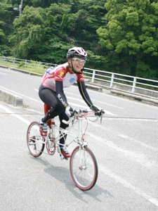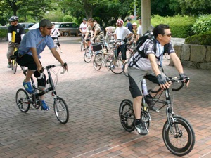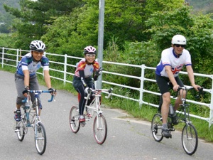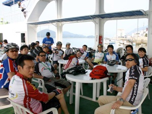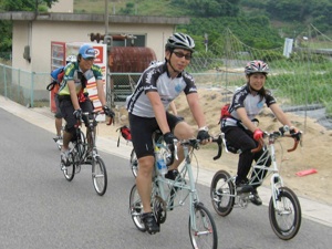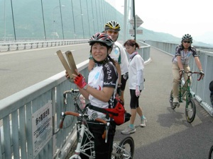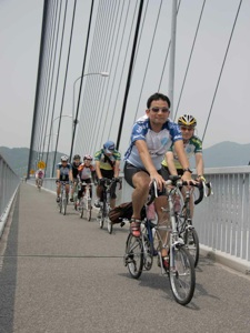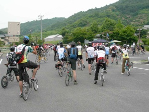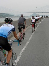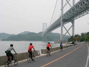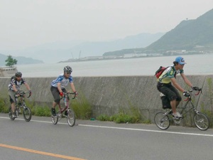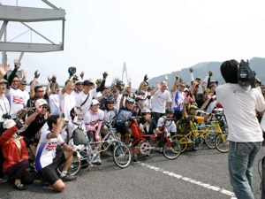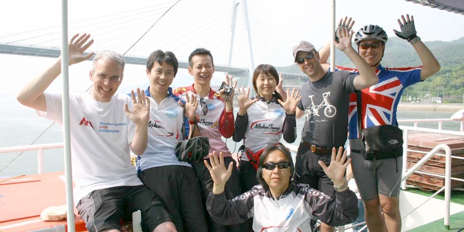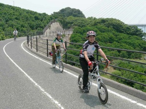 生口島を渡って『因島フラワーパーク』に到着。もの凄い数のモールトンが集結しています。小休止して、先頭から因島大橋に向けてラストスパートです。