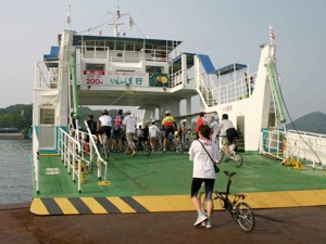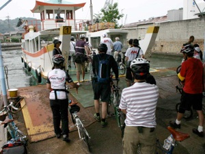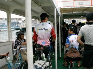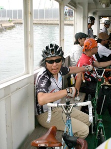 尾道大橋は自転車の走行が危険なため、その手前で渡し舟に乗ります。渡し舟は初体験でしたが尾道駅前まで数分。楽しかったツーリングもこれでおしまい。