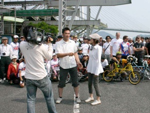赤崎港へ到着。参加者全員で記念撮影。 昨日に引き続き、本日もTV局が取材に。