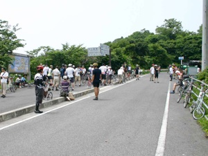 折り返し地点の大三島手前にある、鼻栗瀬戸展望台。ここで小休止。また何組かに分かれて走り始めます。