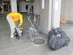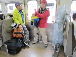 N700系。やっぱり速い乗物はカッコいいですね。指定席でも1両にまとまると自転車を置くスペースが確保しにくいので、いくつかの車両に分かれて広島駅まで向かいました。