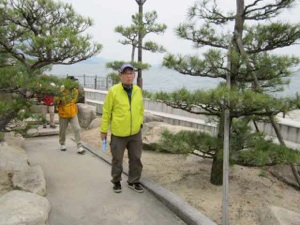 蒲刈大橋をバックに。右手は松濤園。