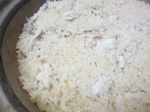 茶碗蒸しに続いて、小振りの鯛の煮付けが一人一匹、そして土鍋にどっさり炊かれた鯛めし。凄いボリュームです。